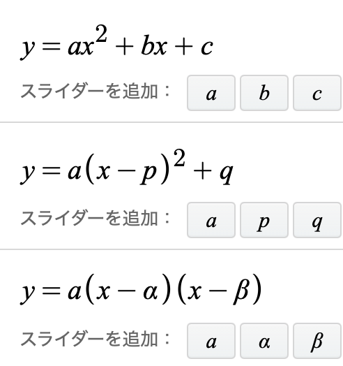 二次関数には、役割に応じた3つの形式があります。