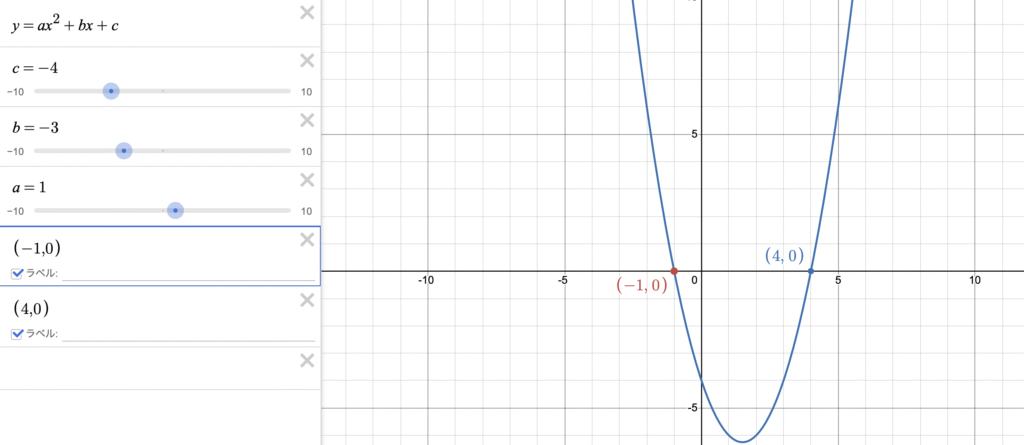 - x 軸と異なる 2 点で交わることを保証します。
