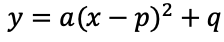 - このとき、グラフの頂点の座標は (p,q)、軸の方程式は x=p となります。